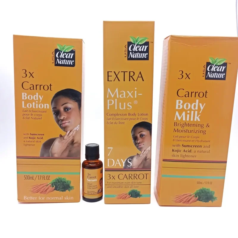 Clear Nature 3X Carrot Body Milk is purposely made to brighten and moisturize the skin. It functions to give you a rapid, clear, light, and flawless complexion. Formulated with kojic acid and carrot extract to help fight against brown spots and hyperpigmentation while ensuring the skin’s utmost hydration. Thanks to the power of carrot extract and sun protection, your skin enjoys a uniform, smooth, and clear complexion.
