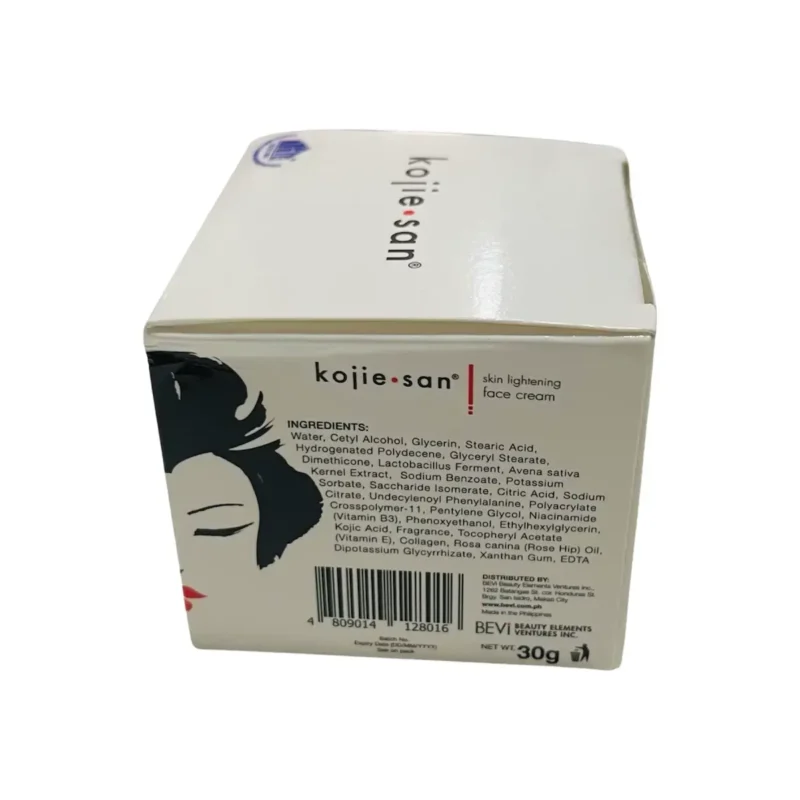 Kojie San Skin Lightening Face Cream effectively lightens the skin by diminishing dark spots and blemishes as well as moisturizing the skin. Formulated with Kojic Acid and Hydro Moist to lighten evenly while keeping your skin hydrated. For best results, use with the Kojie San Soap.