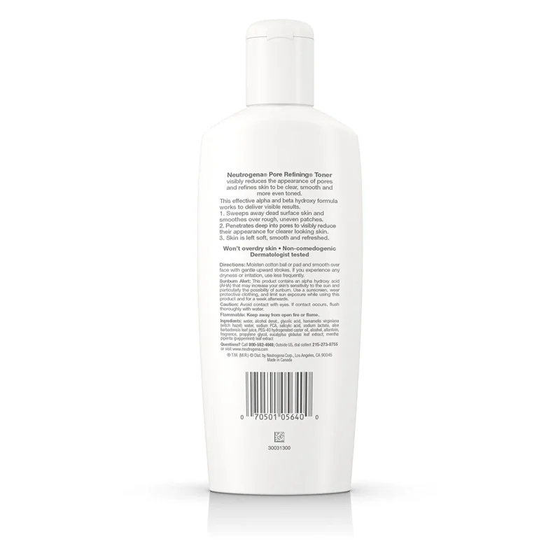 contains witch hazel, alpha and beta hydroxy acids to help deliver visible results and leave skin soft, smooth, and refreshed without over-drying. This refining toner is non-comedogenic, oil-free, and hypoallergenic, so it won’t clog pores or cause irritation.