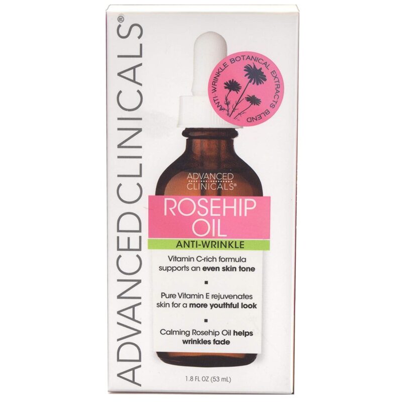 Advanced Clinicals Rosehip Oil Anti-wrinkle formula is enriched with Vitamin C to support an even skin tone whilst fighting acne, Vitamin E to rejuvenate the skin for a more youthful appearance and Rosehip Oil to fade wrinkles away.