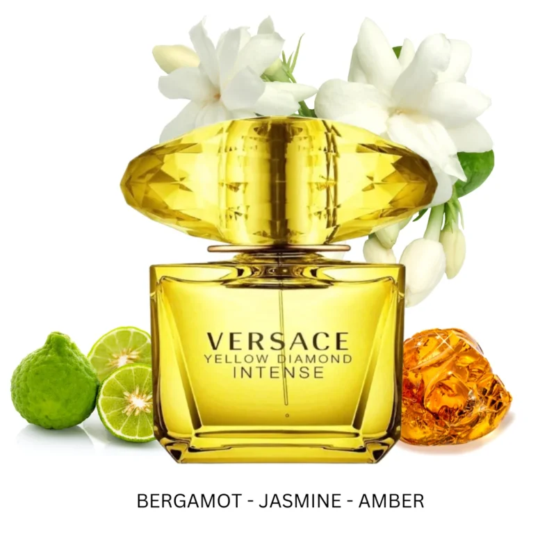 Versace Yellow Diamond Intense perfume by the design house of Gianni Versace is for the glamorous and sophisticated woman. Fruity notes are the star of this fragrance. It features pear and warm coconut at the first opening to reveal a sweet, sensual aroma. At the heart of the fragrance are luxurious white florals, giving the fragrance a softer, warm, and tender character. Other fragrance notes are neroli, citron, bergamot and orange blossom. The juice is then balanced with guaiac wood. Versace Yellow Diamond Intense has long-lasting staying power and was released in 2014.